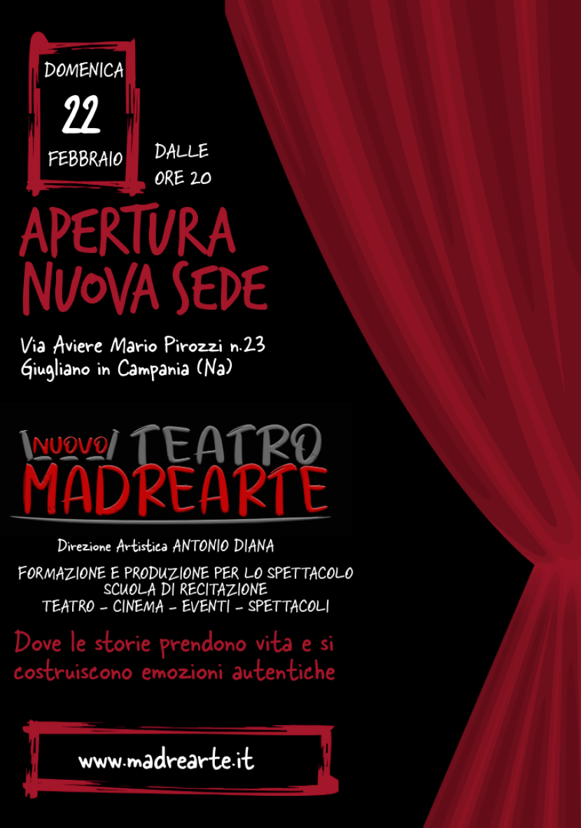 A breve apriranno le porte del Nuovo Teatro Madrearte, la nostra seconda sede che si trova in Via Aviere Mario Pirozzi n.23 Giugliano in Campania. In questa pagnia tutte le informazioni sulle attività della nuova sede.