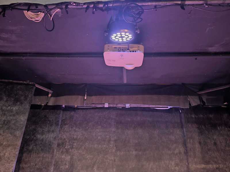 - quadratura nera già presente in quinte armate o in tela che ribaltate sono di colore bianco (adattabile per un interno casa). L'eventuale cambio scena rispetto alla quadratura esistente è a carico